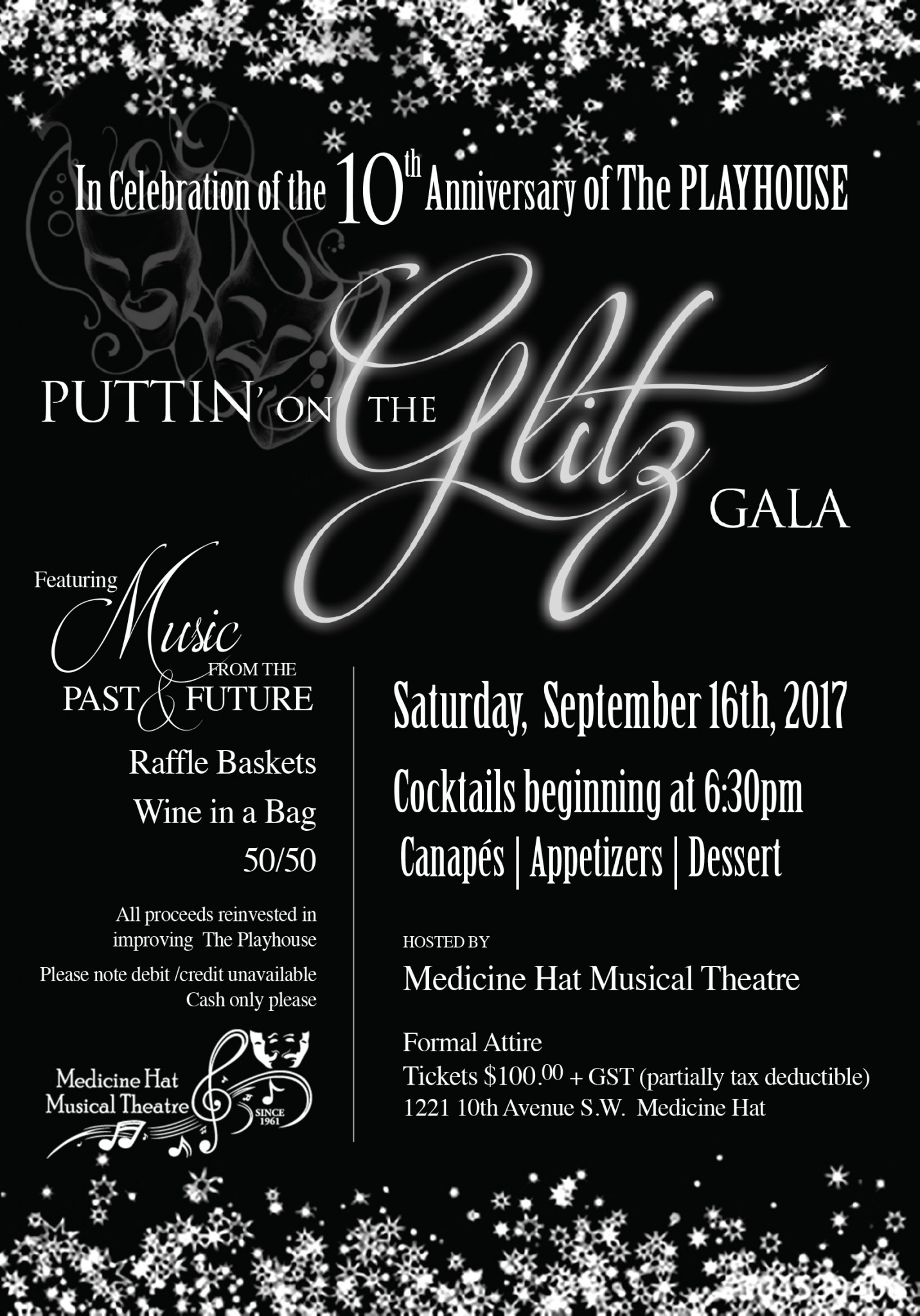 This year MHMT is celebrating the 10th Anniversary of THE PLAYHOUSE, and in honour of this we are putting on a celebratory PUTTING ON THE GLITZ GALA... The event takes place for ONE night ONLY & with ONLY 132 seats available!